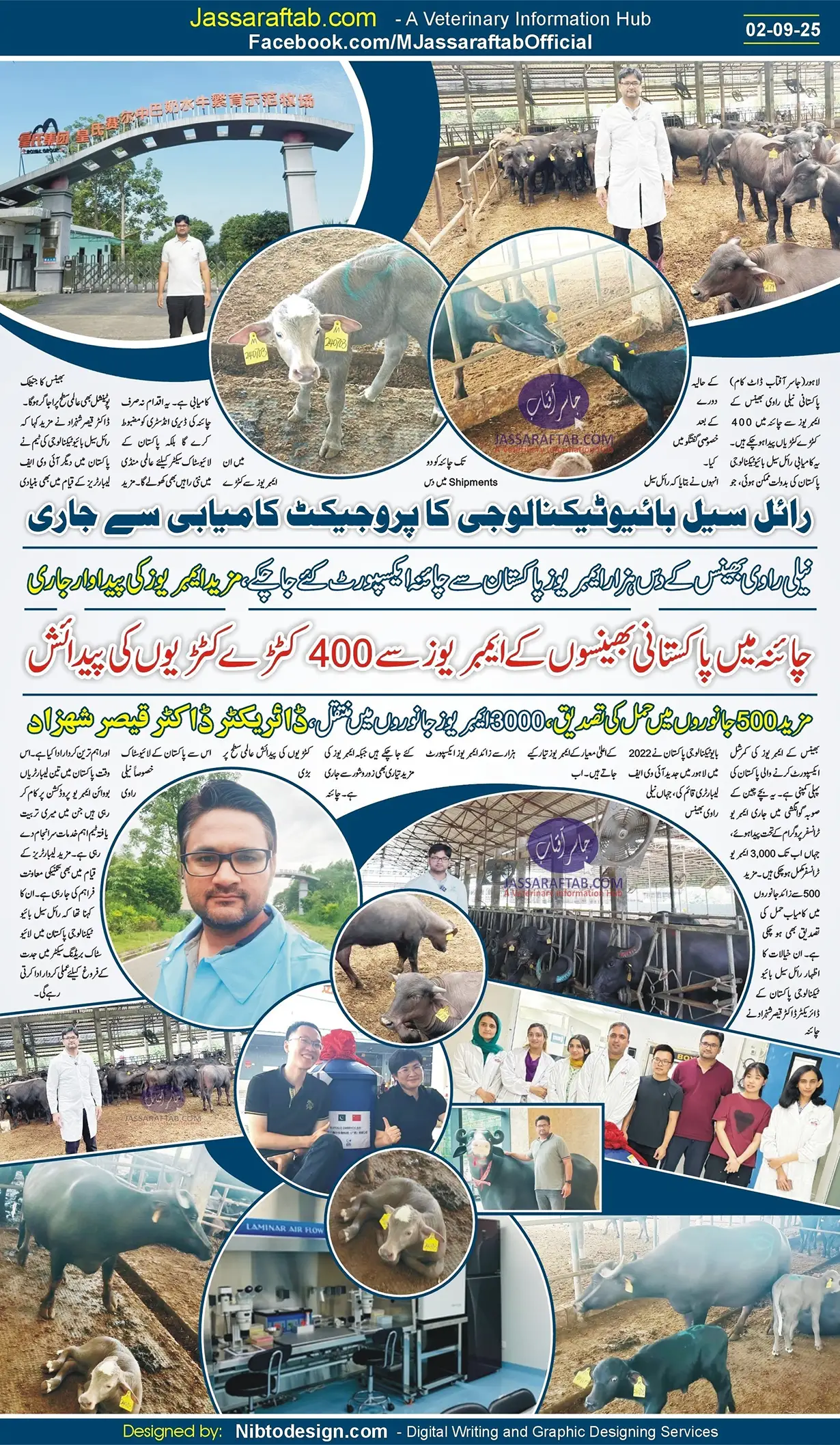 400 calves have been born in China from Pakistani Nili Ravi buffalo embryos. This success was made possible by Royal Cell Biotechnology Pakistan, the first Pakistani company to commercially export embryos of buffalo. These calves were born under the ongoing embryo transfer program in Guangxi province, China, where 3,000 embryo transfers have been completed so far. Successful pregnancies have also been confirmed in more than 500 animals. These views were expressed by Dr. Qaiser Shahzad, Director of Royal Cell Biotechnology Pakistan, in an exclusive interview after his recent visit to China.