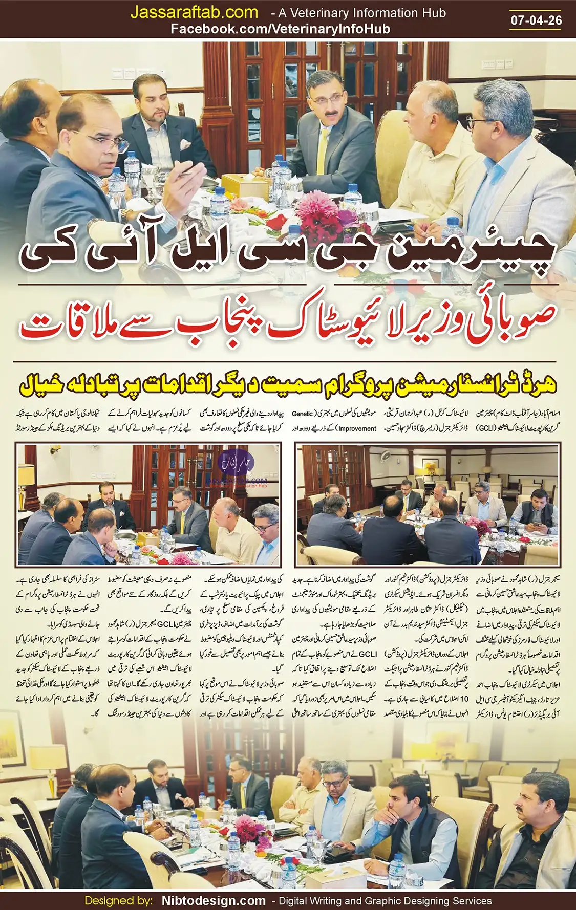 Provincial Minister Syed Ashiq Hussain Kirmani and Chairman GCLI agreed to extend this project to all districts of Punjab so that maximum farmers can benefit from it. The meeting also emphasized that along with the improvement of local breeds, high-yielding foreign breeds should be introduced so that a significant increase in milk and meat production can be achieved at the national level.