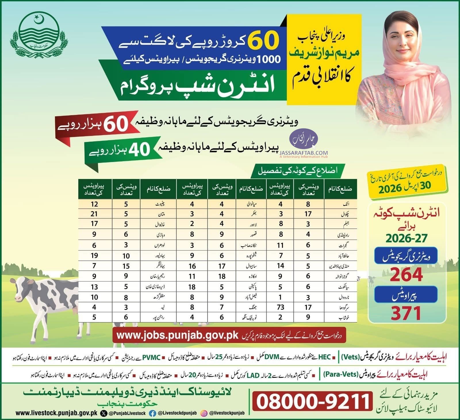 Moreover, the application process is simple and fully digital. Interested candidates can apply online through the official portal www.jobs.punjab.gov.pk. Importantly, the last date to apply is 30 April 2026, so applicants should submit their forms well before the deadline. In addition, the government has provided a dedicated helpline (08000-9211) to assist applicants throughout the process. This ensures accessibility and encourages more candidates to apply for these CM internships for vets and paravets.