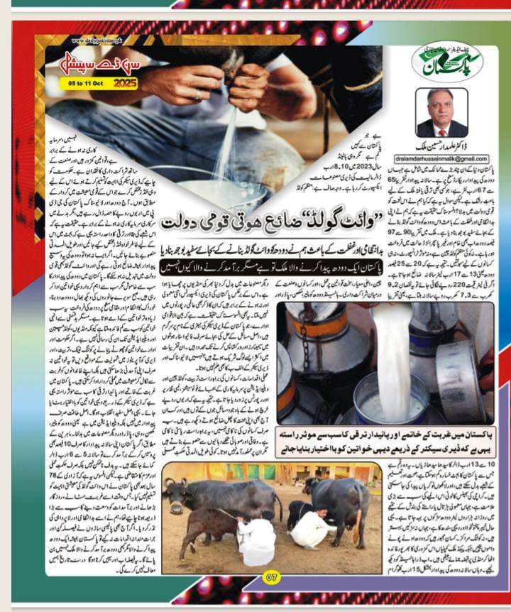 Pakistan is among the few major countries in the world where milk production is at a record level. The annual production is about 65 to 67 billion liters, which is a source of envy for any developed country. But the question is, have we converted this blessing into national wealth? The sad fact is that instead of making this milk white gold, we have turned it into a white burden. This is due to our mismanagement and negligence.