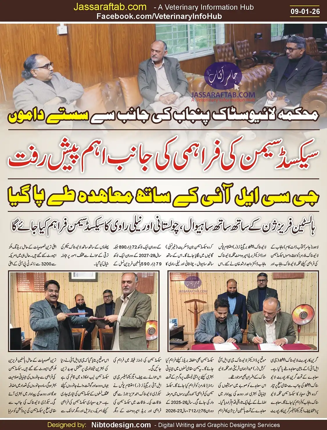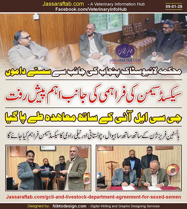 An agreement has been signed between the Livestock Department Punjab and the Green Corporate Livestock Initiative (GCLI) to provide sex sorted semen to the livestock farmers of Punjab at affordable prices. Under the agreement, high-quality bovine sexed semen produced locally by the Green Corporate Livestock Initiative will be provided to the Livestock Department Punjab.