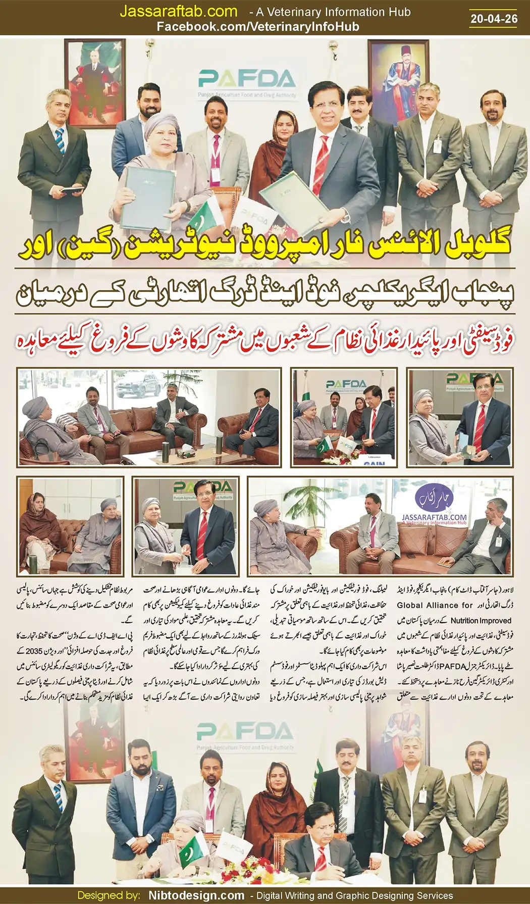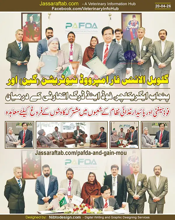 A Memorandum of Understanding (MoU) has been signed between the Punjab Agriculture, Food and Drug Authority (PAFDA) and the Global Alliance for Improved Nutrition (GAIN) to promote joint efforts in the areas of food safety, nutrition and sustainable food systems in Pakistan. Director General PAFDA Dr. Talat Naseer Pasha and Country Director Gen Farah Naz signed the agreement.