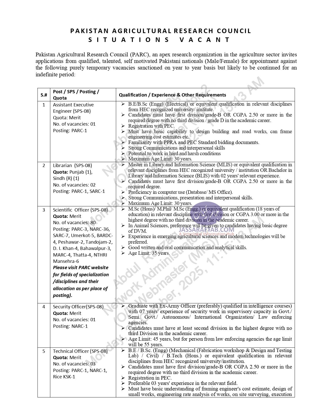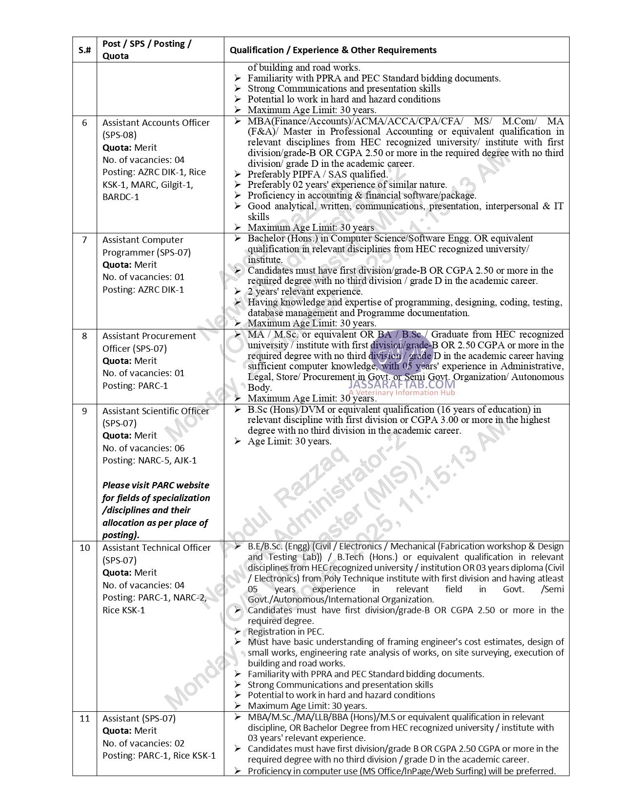 Most Importantly, these jobs available in PARC-3, NARC-36, SARC-7, Umerkot-5, BARDC-4, Peshawar-2, Tandojam-2, D. I. Khan-4, Bahawalpur-3, MARC-4, Thatta-4, NTHRI Mansehra-6.