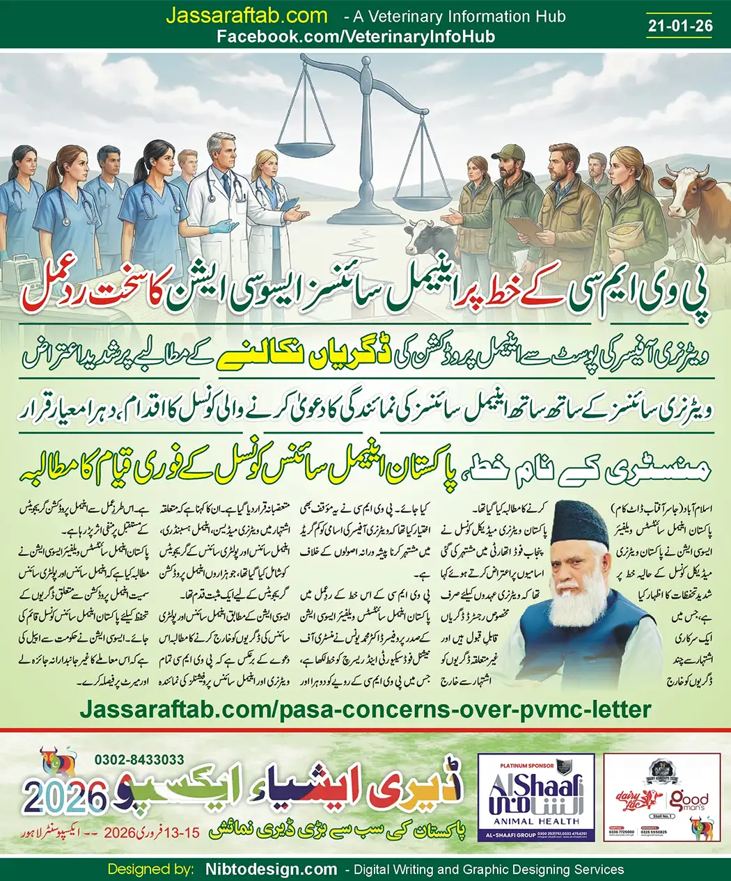 The Pakistan Animal Scientists Welfare Association said that the demand to exclude Animal Science and Poultry Science degrees contradicts PVMC’s claim of representing all veterinary and animal science professionals. PASA warned that such actions are negatively affecting the future of animal production graduates.