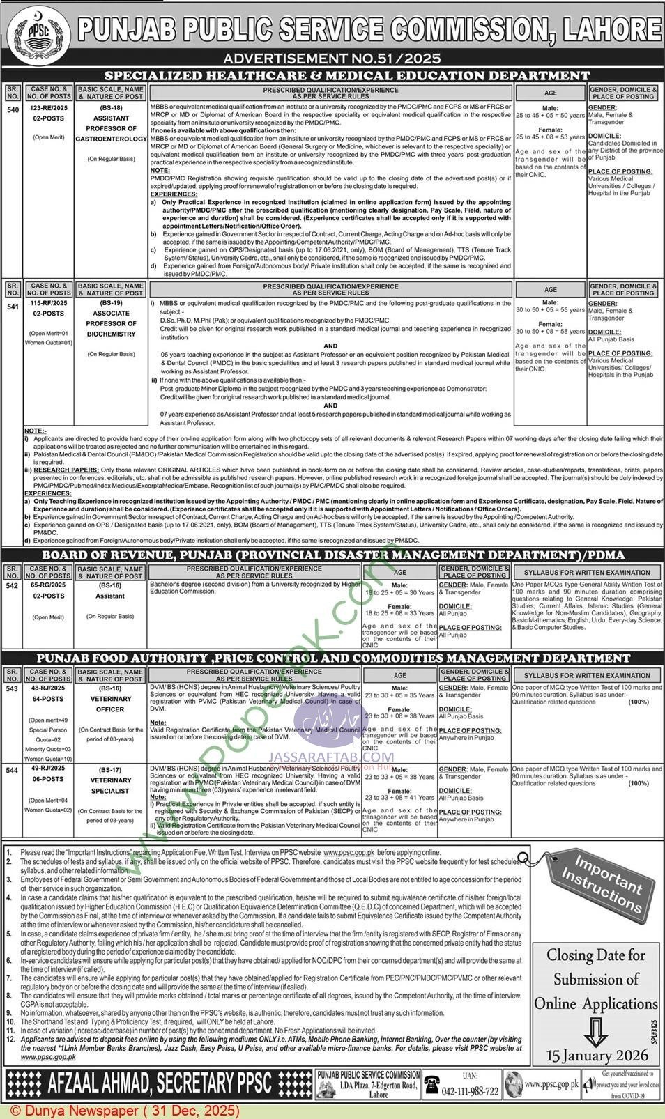 Meanwhile, age limits vary according to the post and gender, as per PPSC rules. Importantly, only candidates holding Punjab domicile can apply. Additionally, selected candidates may be posted anywhere in Punjab or at specified institutions, depending on departmental requirements.