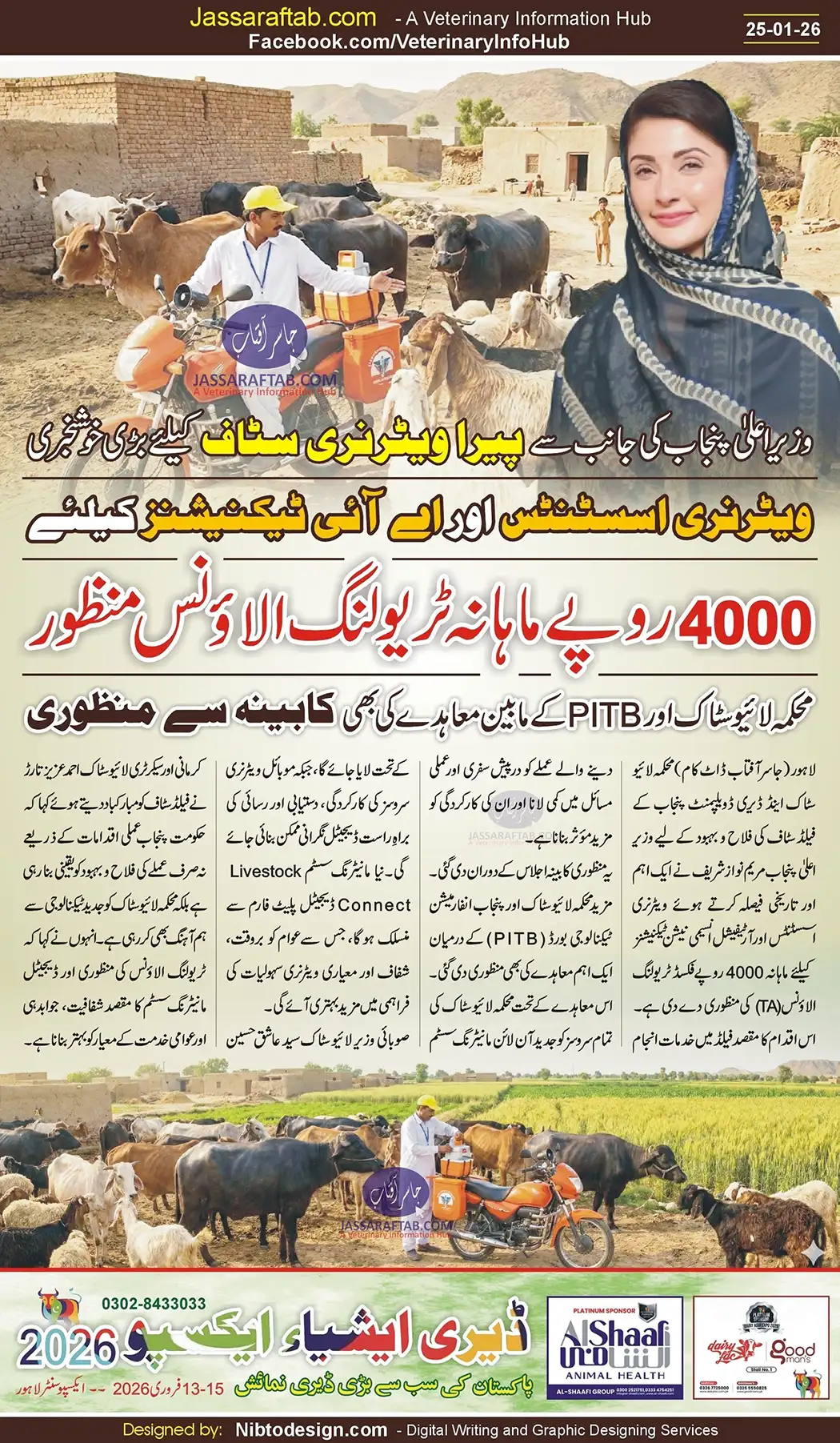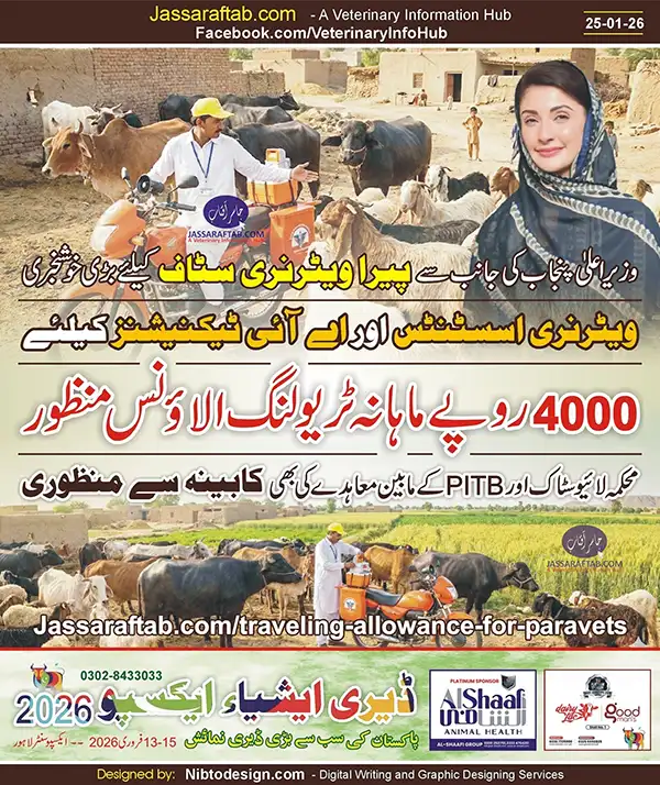 Chief Minister Punjab Maryam Nawaz Sharif has approved a fixed traveling allowance for Paravets of Livestock Department Punjab. This is being called a historic decision for the welfare of the field staff of the Livestock and Dairy Development Department of Punjab. TA of Rs 4,000 per month for veterinary assistants and artificial insemination technicians has been approved in the cabinet meeting. The move aims to reduce the travel and practical problems faced by the staff serving in the field and make their performance more effective.