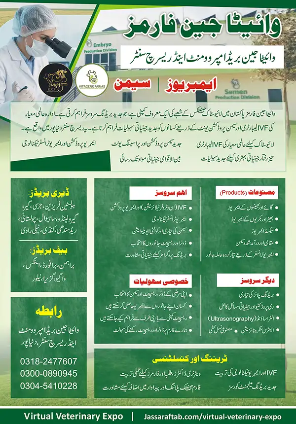 The Vitagene Farms, a livestock genetics company, operates as Pakistan’s top genetic service provider for livestock breeding. We offer advanced breeding services through international standrad IVF Lab for livestock which include IVF in livestock with capabilities for embryo production, embryo transfer, and advanced bovine semen technologies. Our Products include all types of conventional bovine embryos (cattle embryos and buffalo embryos), sheep embryos, goat embryos, sexed embryos, and cattle semen. We also provide imported semen, which we offer for beef and dairy breeds. Vitagene Breed Improvement and Research Centre is located in Dunyapur, Punjab.