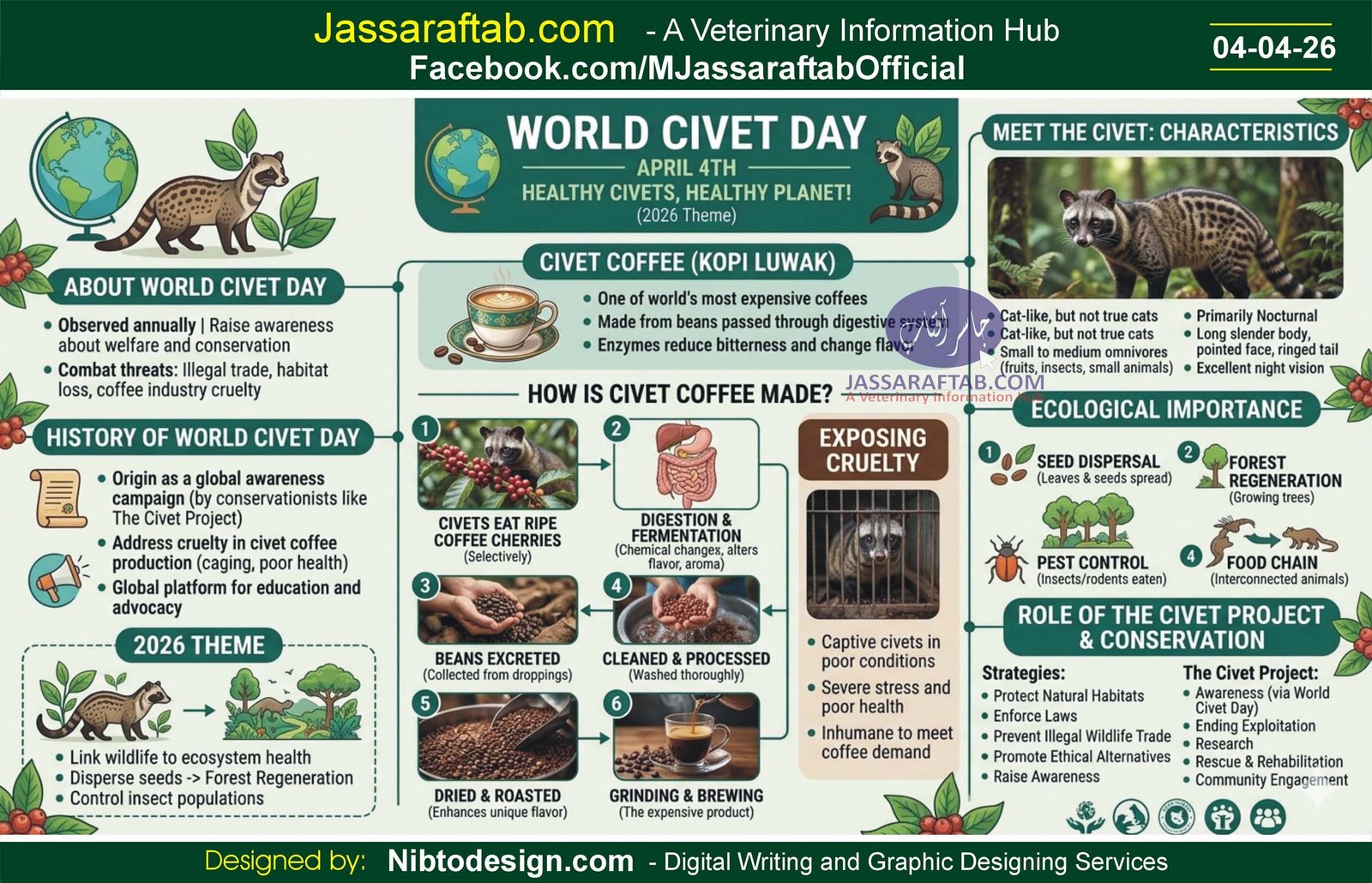 World Civet Day is observed every year on April 4. It raises awareness about civets and their welfare. Moreover, it highlights the urgent need for civets conservation. The civet project established this day to combat various threats like Civet Coffee or kopi luwak Industry, illegal trade and habitat loss. Civets are small but ecologically important mammals. Therefore, protecting them supports biodiversity and environmental balance. World Civets Day 2026 theme is Healthy Civets, Healthy Planet!