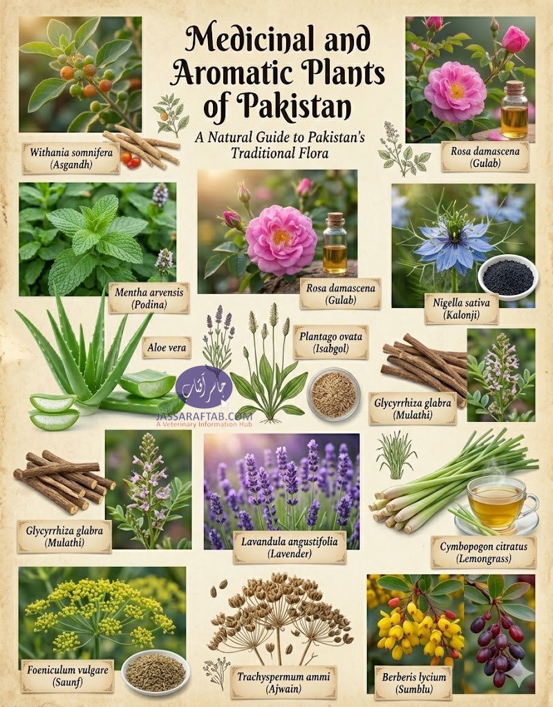 Moreover, Nigella sativa (Kalonji) is well known for immune support and is widely applied in both human and veterinary remedies. Across the country, Aloe vera (Aloe) grows easily and helps heal skin conditions as well as improve digestion. In addition, Berberis lycium (Sumblu) is found in mountainous regions and supports liver health while acting as a natural antimicrobial agent. Together, these plants play a significant role in Pakistan’s traditional medicine and rural economy.